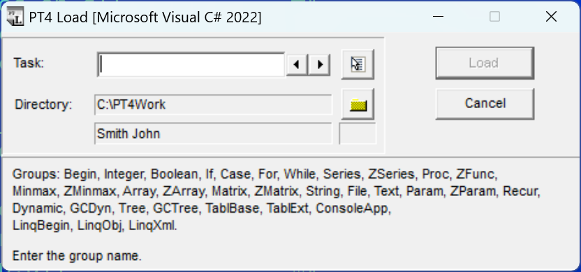 Starting from version 4.22, the PT4Load module can be launched using the auxiliary PT4Panel module,